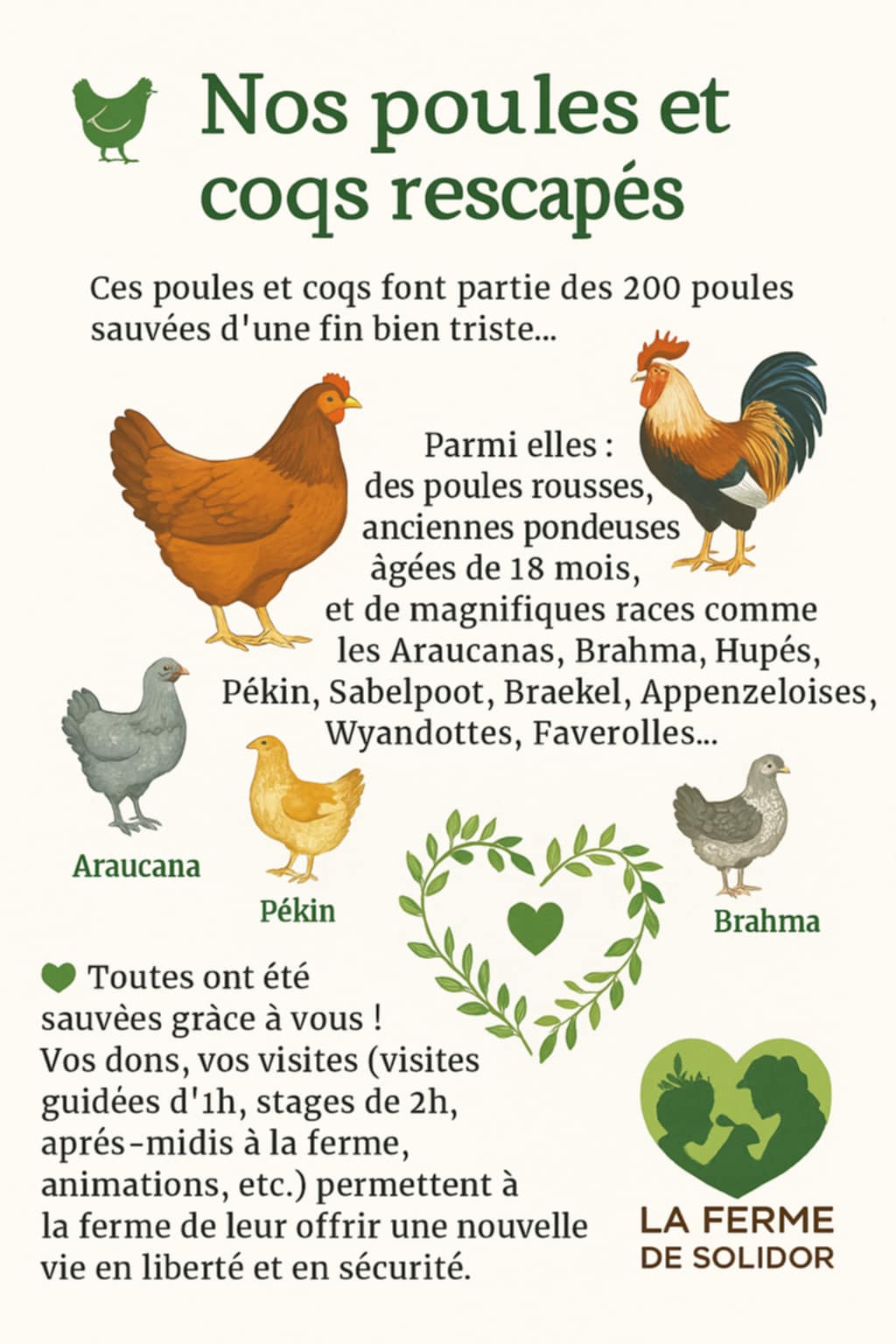 Notre ferme, Les P’tits Cœurs de Solidor, est bien plus qu’un simple refuge pour les animaux. C’est un sanctuaire où chaque jour, nous œuvrons avec passion pour offrir une seconde chance à des êtres vulnérables. Chaque contribution que vous apportez soutient notre mission de sauver et de prendre soin de ces adorables créatures. Votre aide nous permet de leur offrir un abri sûr, une alimentation saine et les soins dont ils ont besoin pour s’épanouir. En nous aidant, vous devenez un maillon essentiel de notre communauté dévouée à la protection et au bien-être des animaux. Chaque geste de générosité fait une différence concrète dans la vie de nos pensionnaires, et nous vous en sommes profondément reconnaissants. Merci de nous rejoindre dans cette noble cause et de faire partie du changement positif que nous voulons voir dans le monde.